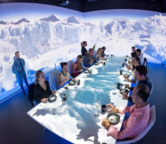 - Menú Restaurante Ultraviolet (Shanghái) – 450 dólares por persona. Se puede discutir si fue antes el huevo o la gallina, pero lo cierto es que antes de que existiese un Sublimotion en Ibiza existía Ultraviolet en Shanghái. Creado por el chef francés Paul Pairet en 2012 a partir de un concepto en el que llevaba trabajando desde 1996, Ultraviolet ofrece una experiencia gastronómica multisensorial que incluye un espectáculo de luces, música y proyecciones.